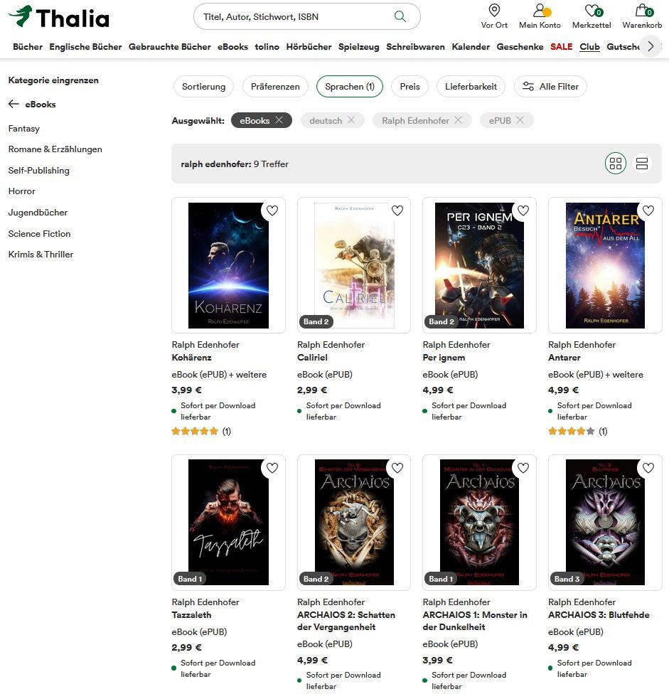 Meine Ebooks bei Thalia, Hugendubel u.a.